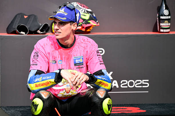 หลังจากที่เราเพิ่งได้เห็นภาพ เฟร์มิน อัลเดเกร์ (Gresini) รุกกี้แห่งปี 2025 ก้าวขึ้นไปฉลองบนโพเดี้ยมอันดับ 3 อย่างภาคภูมิใจ เคียงข้าง ฟรานเชสโก้ บันยาญ่า และ อเล็กซ์ มาร์เกซ… แต่ทว่า รอยยิ้มและความสำเร็จนั้น ก็ “อยู่ได้ไม่นาน”